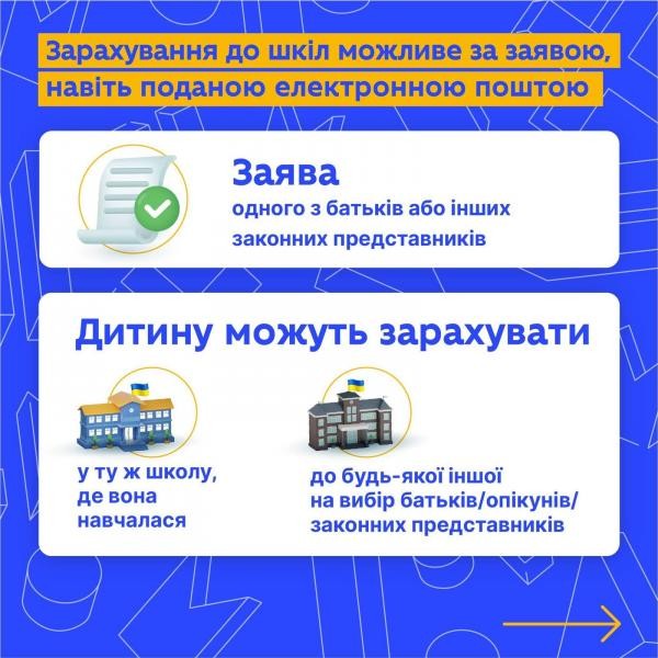 Зарахування дітей до 1-х класів закладів загальної середньої освіти проводиться згідно з Порядком зарахування, відрахування та переведення учнів до державних та комунальних закладів освіти для здобуття повної загальної середньої освіти, затвердженим наказом МОН України від 16.04.2018 № 367.