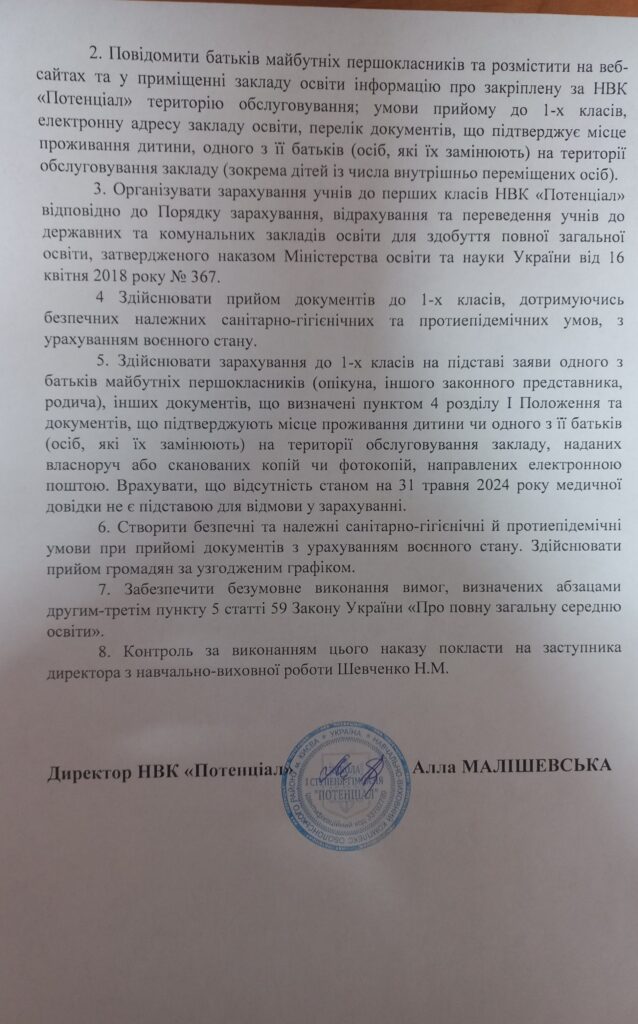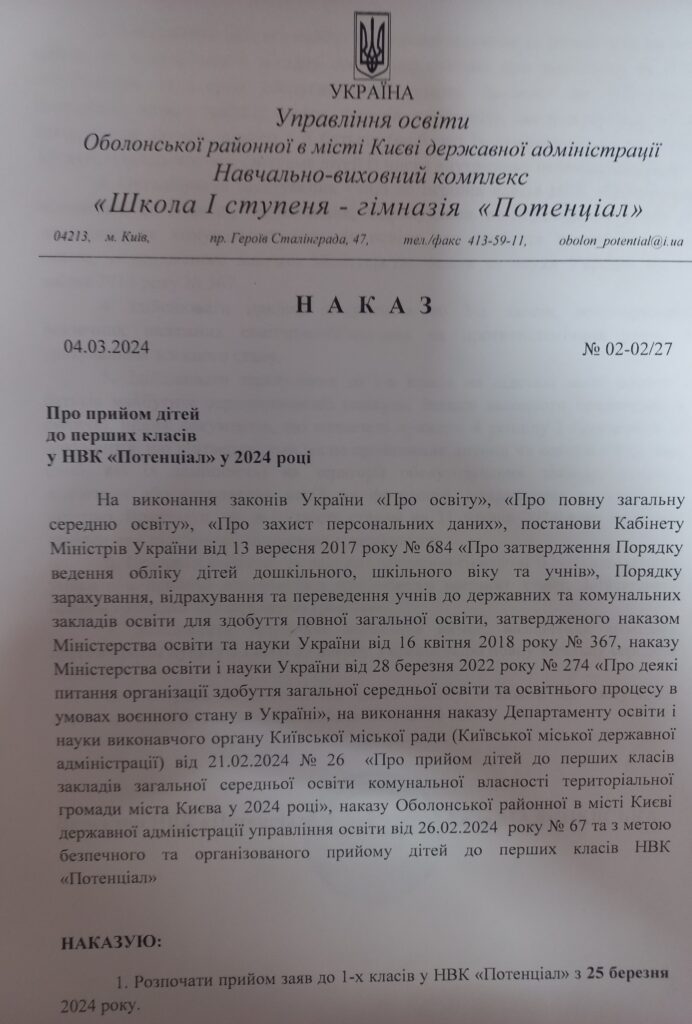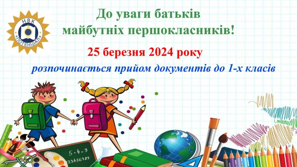 📌З 25 березня 2024 року розпочинається прийом документів до 1-х класів НВК «Потенціал» Оболонського району міста Києва.