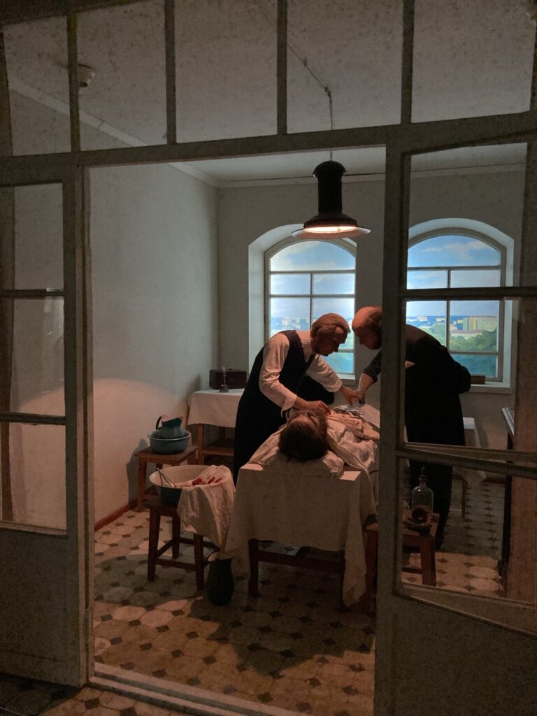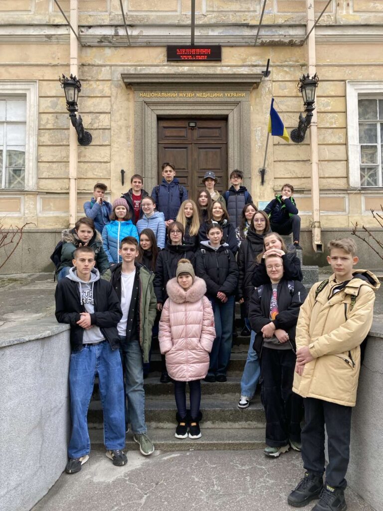Лазня періоду Київської Руси, стародавня аптека, українська хата з хворим та лікарем, перша операційна, кабінет видатного епідеміолога Д.К.Заболотного, військовий госпіталь, найдавніше медичне обладнання та інструменти, гербарії лікарських рослин та анатомічні препарати допомогли учням 8-А класу відчути як розвивалася медицина,а також як і чим лікували кілька століть тому.