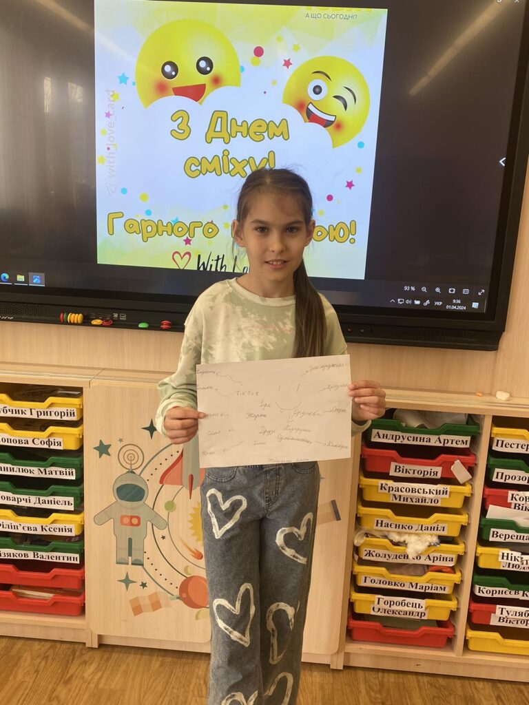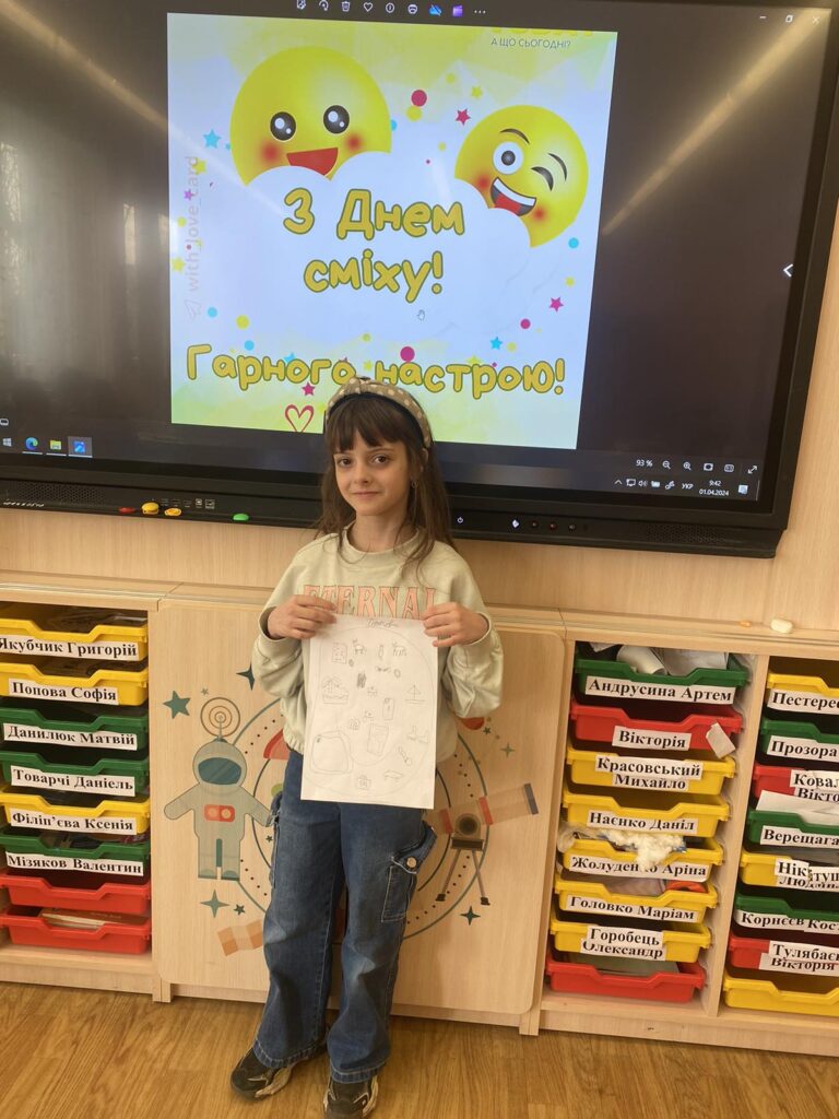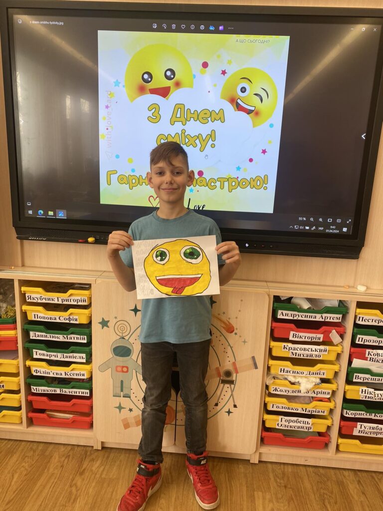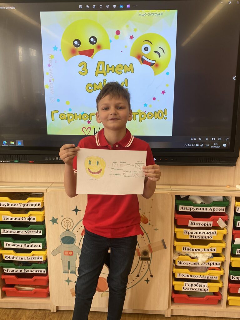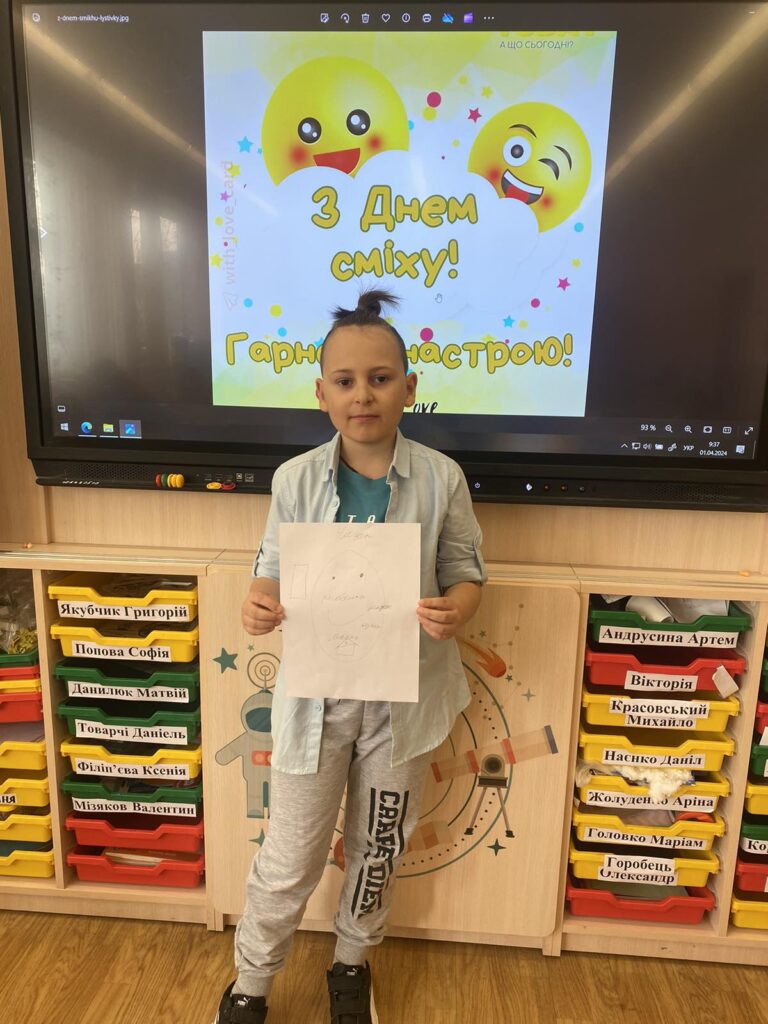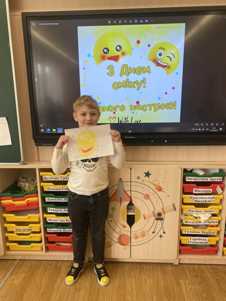 Розпочати навчання після канікул хочеться з позитивним настроєм , а тому сьогодні ми відзначили День сміху. Це позитивне, жартівливе та веселе весняне свято, особливістю якого є дотепні розіграші, проте ми вирішили дещо змінити звичний день, а тому запропонували усім долучитись до виконання цікавого завдання. Ми обрали метод “Фішбоун”, який дозволив побачити те, що дарує нашим учням позитивні емоції , а також звернуали увагу на користь сміху. Сміх не лише дарує гарний настрій, а й дуже корисний для нашого здоров’я!