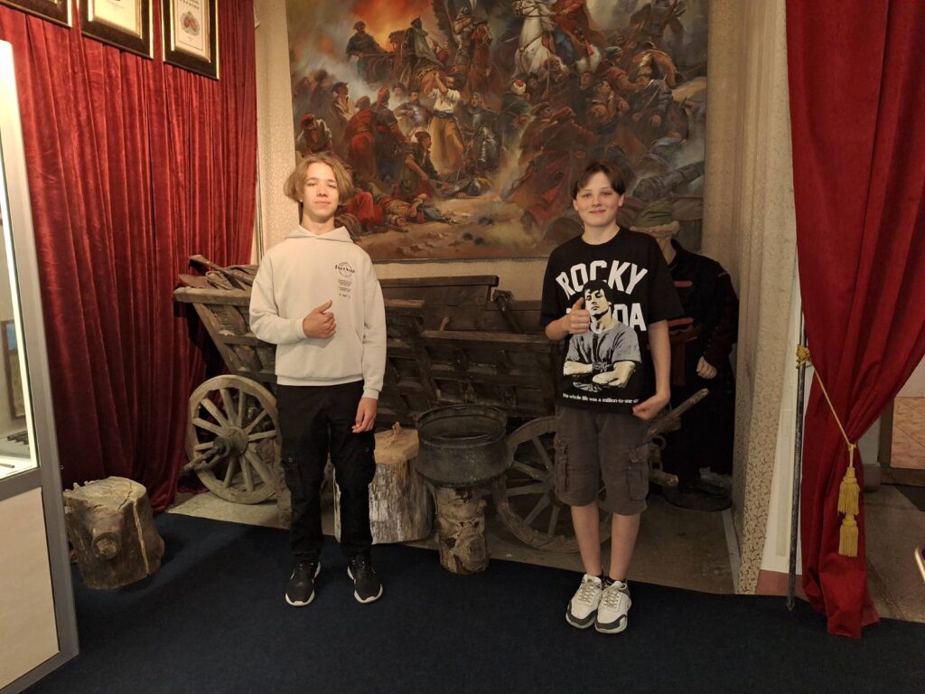 Окрема експозиція- ВІЙНА УКРАЇНСЬКОГО НАРОДУ ЗА НЕЗАЛЕЖНІСТЬ 2014-2022…років. Представлена сучасна зброя, якою наші ЗСУ захищають Україну. Учні на власні очі побачили байрактар, човен-дрон, гранатомет ПТРК, дрони.