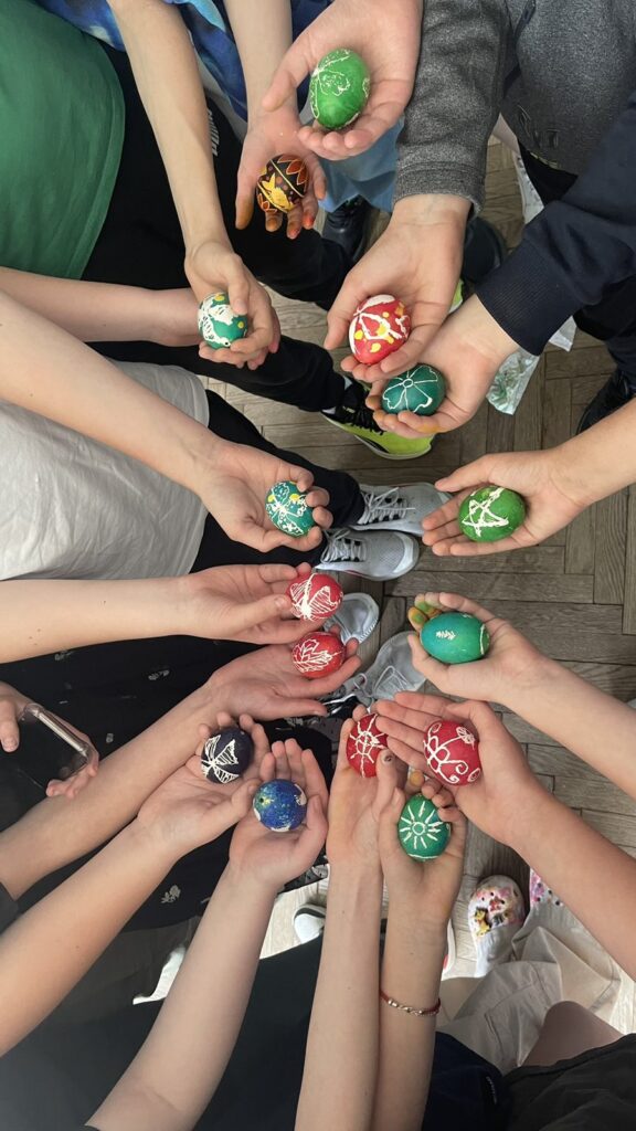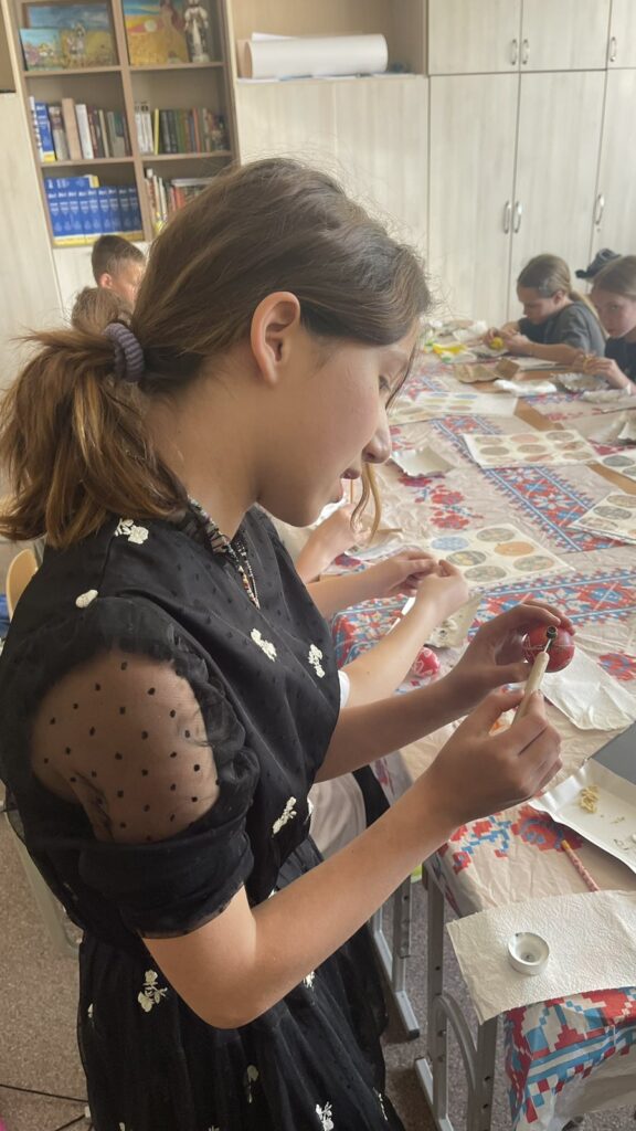 Писанка — одна з найдавніших форм українського народного розпису. Вона пов’язана з давніми народними обрядами, які увібрали українські мотиви. Саме тому вже декілька років наша майстриня проводить майстер-класи для учнів та вчителів. Вовк Н.М. змогла занурити і дітей , і вчителів у світ писанкарства та допомагала упродовж всього майстер-класу. Учасники писали писанки традиційним способом, використовуючи віск та давні техніки. Кожен намагався максимально чітко відтворити символи, аби сторити неймовірну писанку.