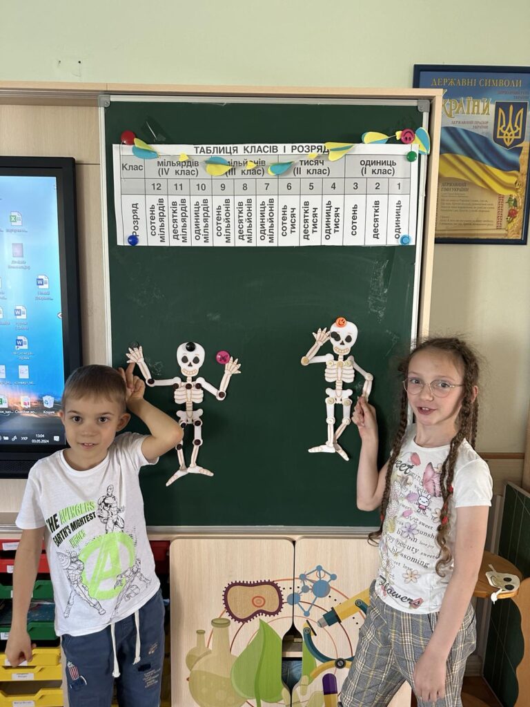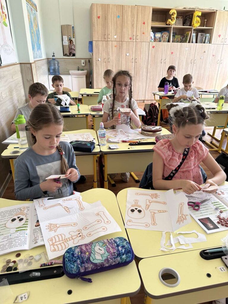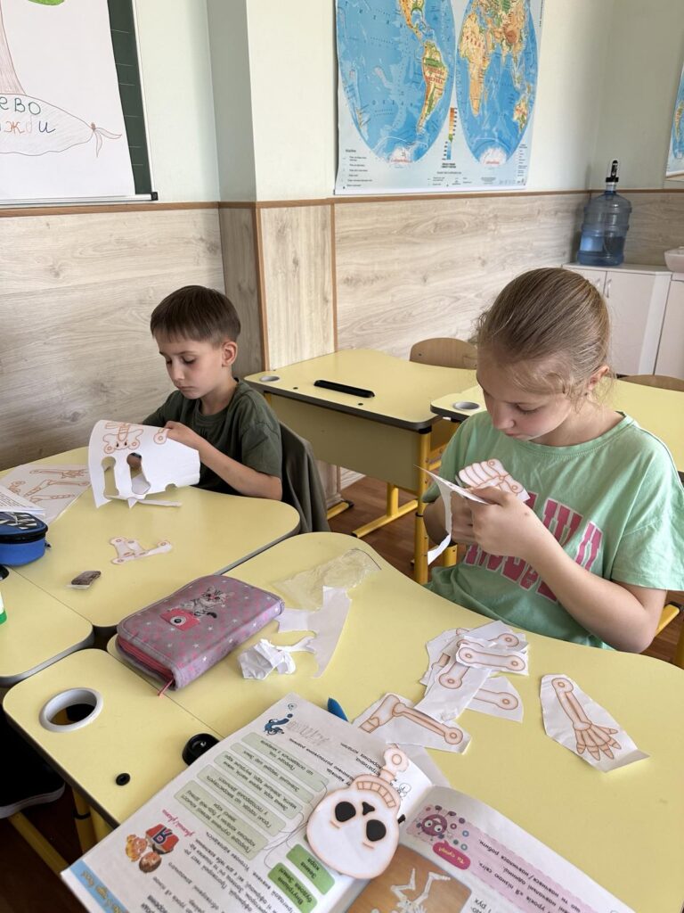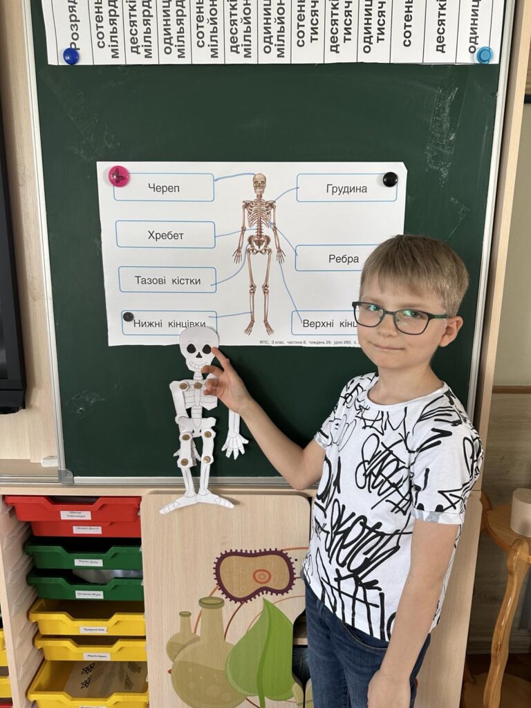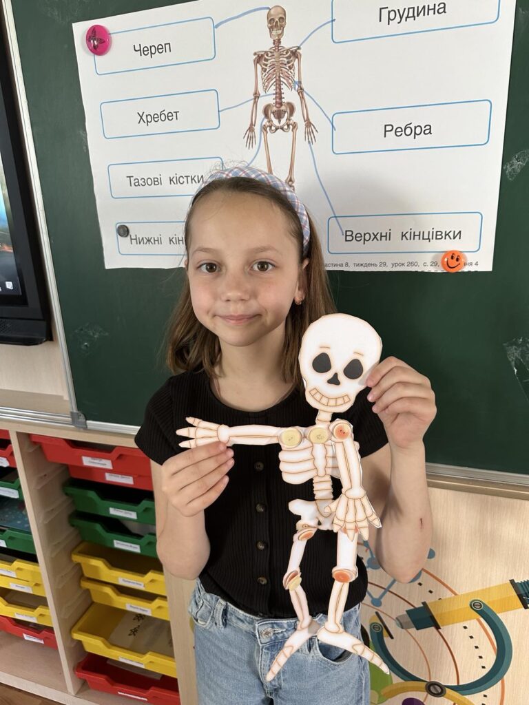 Сьогодні діти створили власну модель скелета за допомогою шаблона кісток, ґудзиків і дротиків. Робота надто кропітка і складна, але всі справились із завданням!