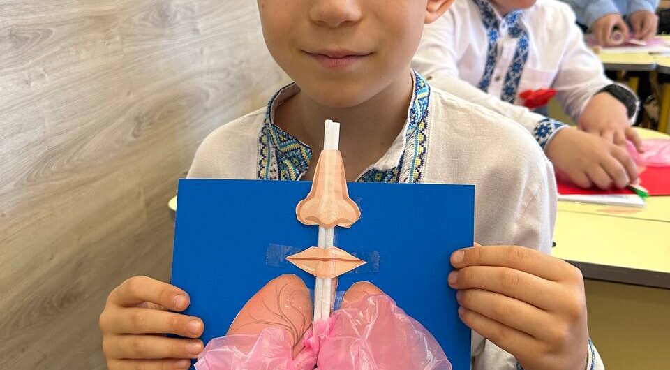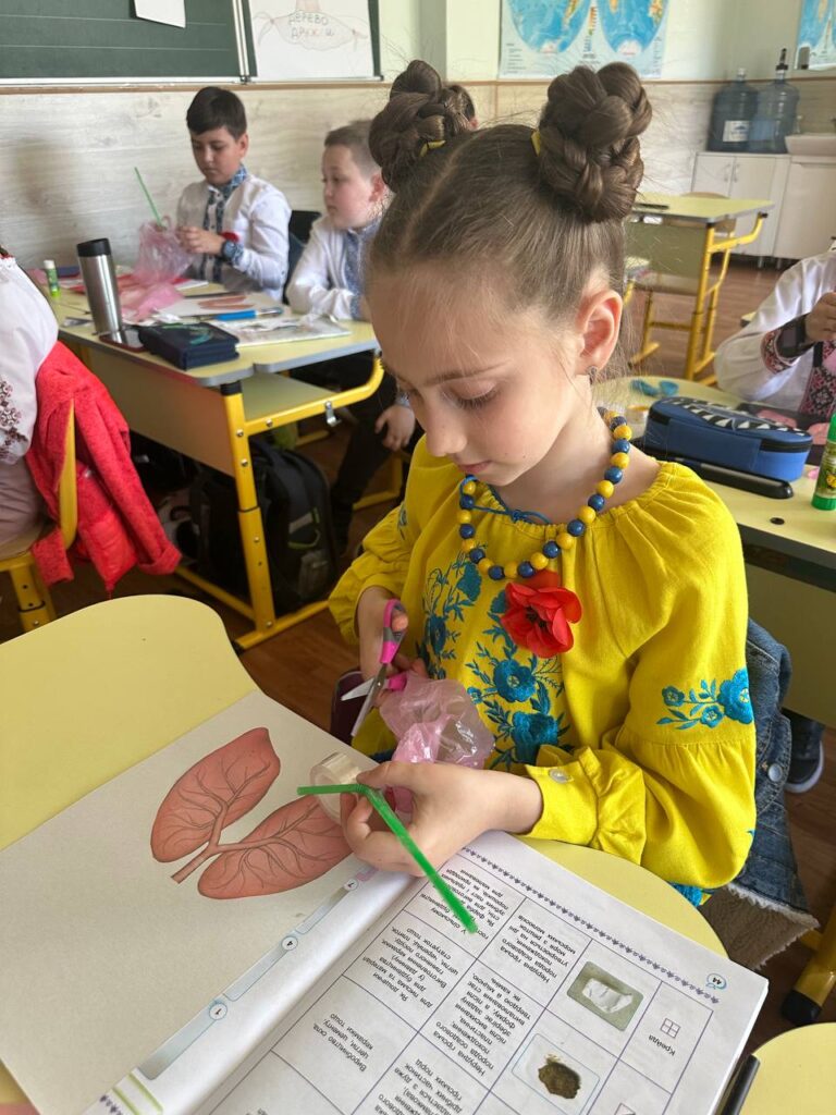 Цікаві моделі легенів виготовили третьокласники та випробували їх роботу, дізнавшись, що в середньому людина робить 15 вдихів-видихів за хвилину,а це складає за годину 900 вдихів-видихів!