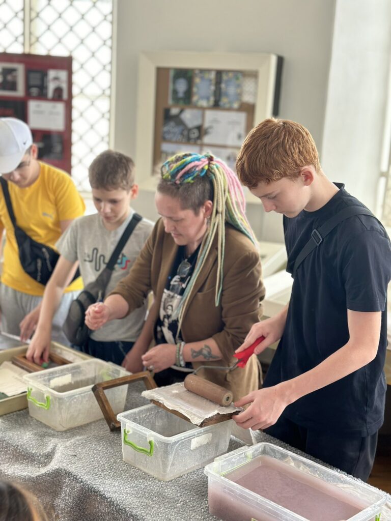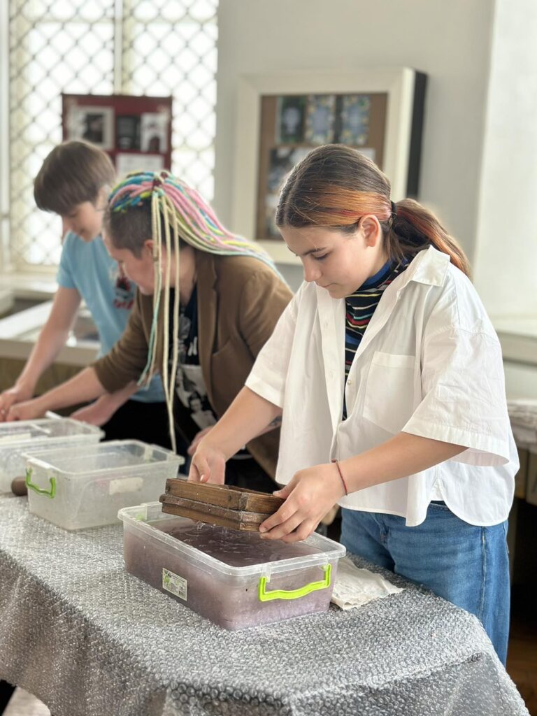 Сьогодні учні 6-В класу відвідали майстер-клас з виготовлення паперу ручного литва. Спочатку школярі дізнались історію виникнення паперу та процес його виготовлення . А потім разом з майстрами зробили папір власними руками! Це було неймовірно!!!