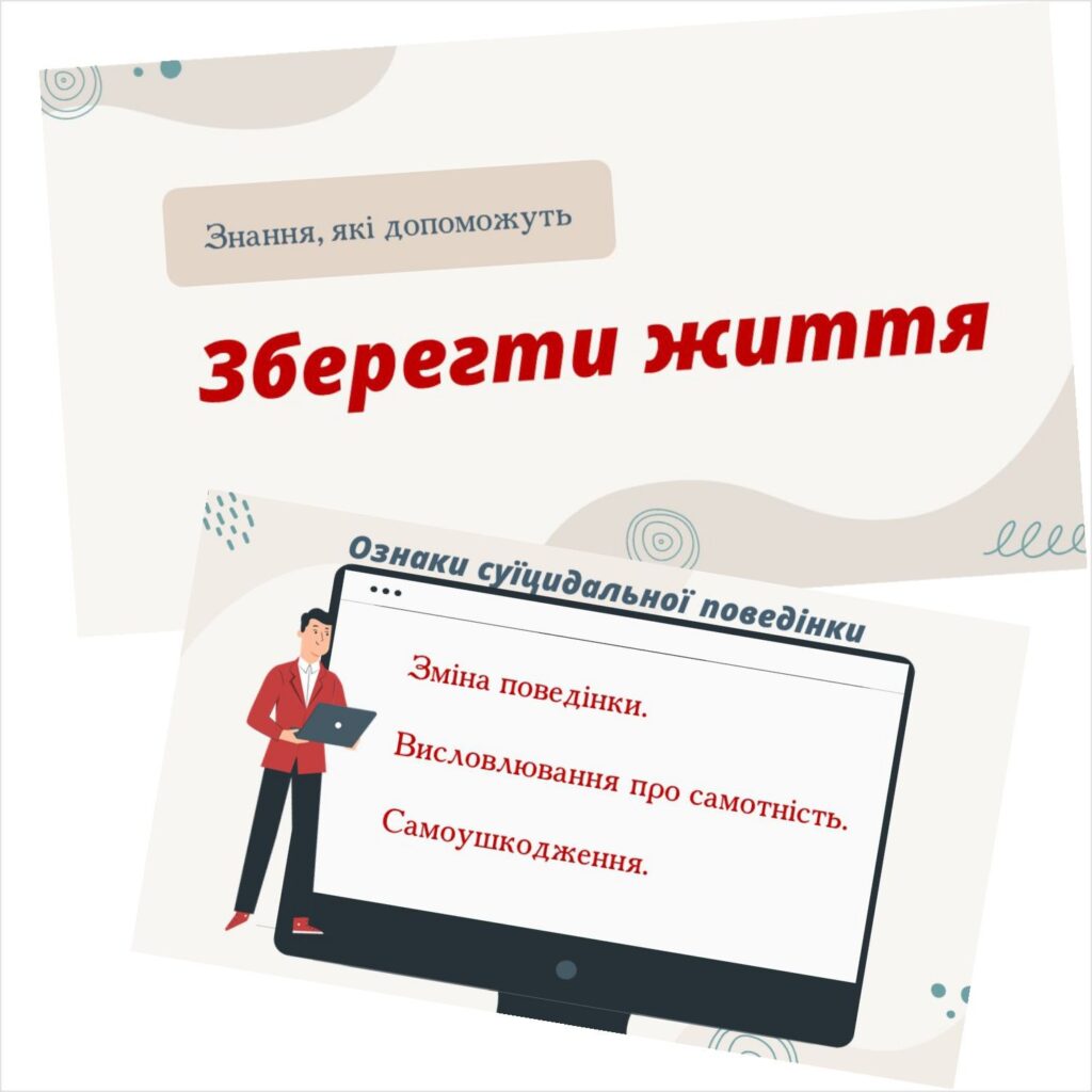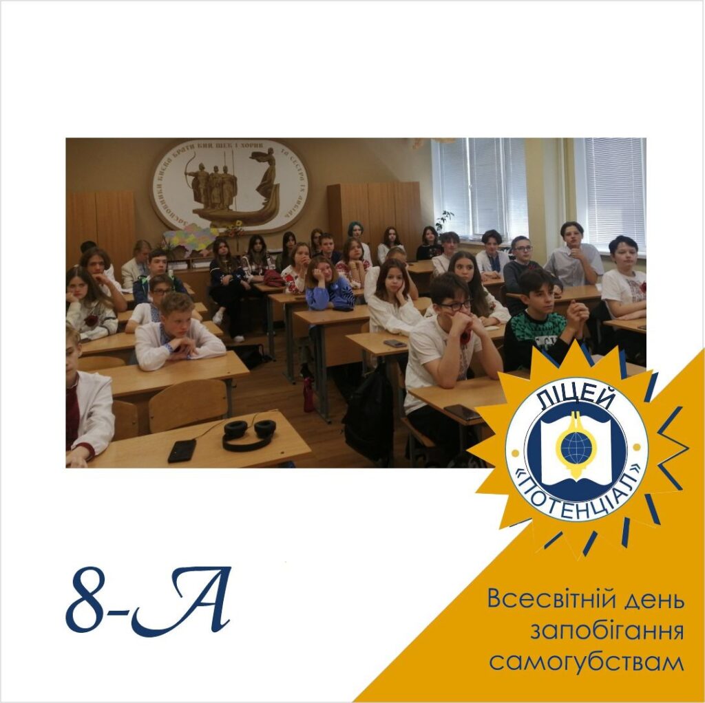 Для 8-А психологиня Оксана Андріївна підготувала яскраву презентацію і лекцію «Знання, які рятують», під час якої восьмикласники мали змогу подивитися мультфільм про те, як говорити з другом, який опинився у важкій життєвій ситуації.