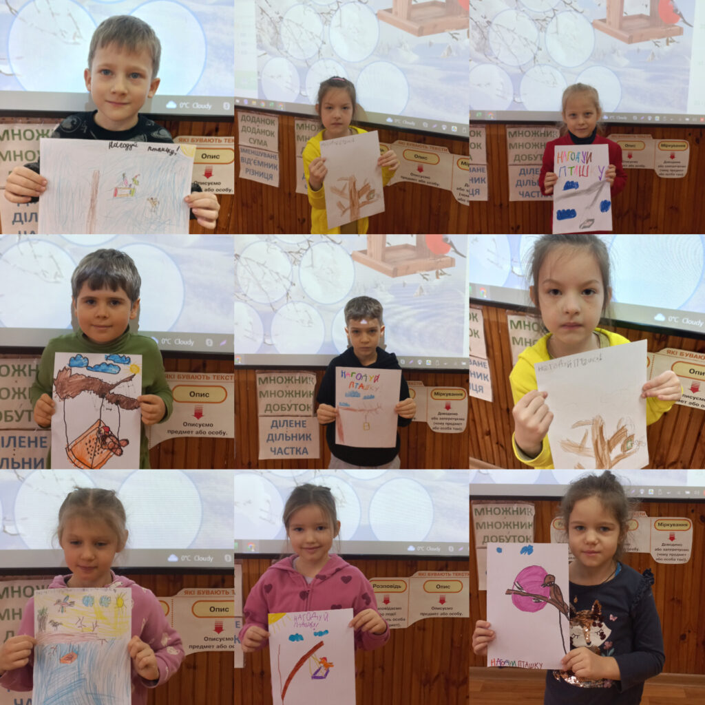 Учні 1-Б та 3-А класів вирішили намалювати мотиваційні малюнки, які є проханням допомогти пташкам. Кожен може зробити годівничку та повісти її поруч з будиноком, аби щодня мати змогу підгодовувати маленьких друзів.