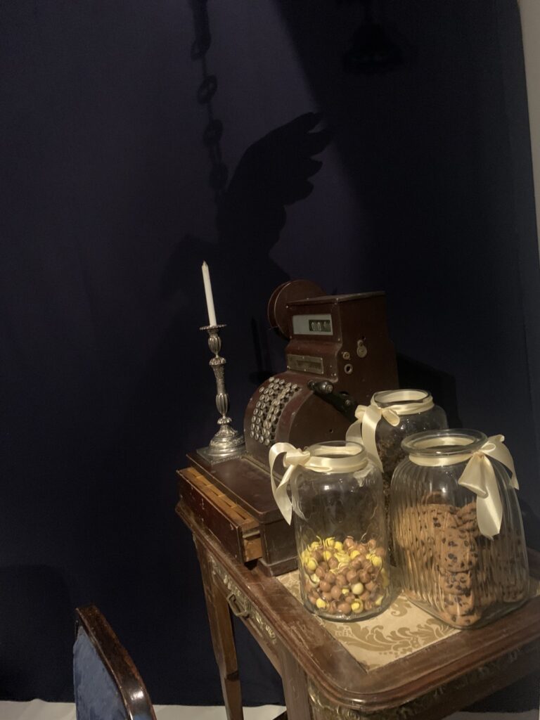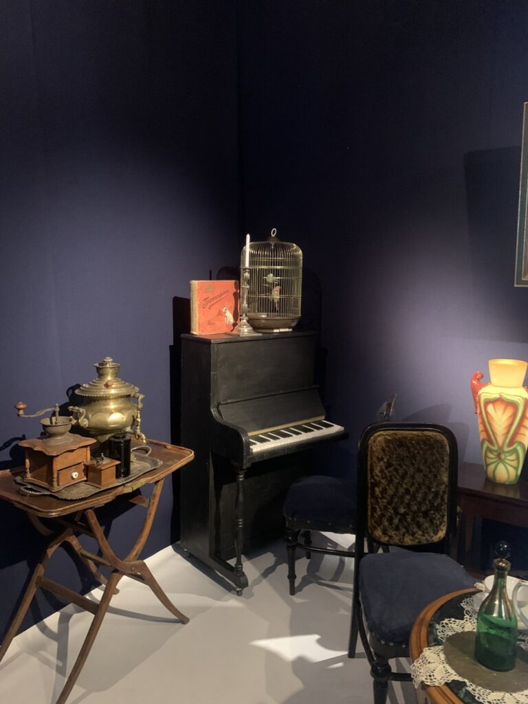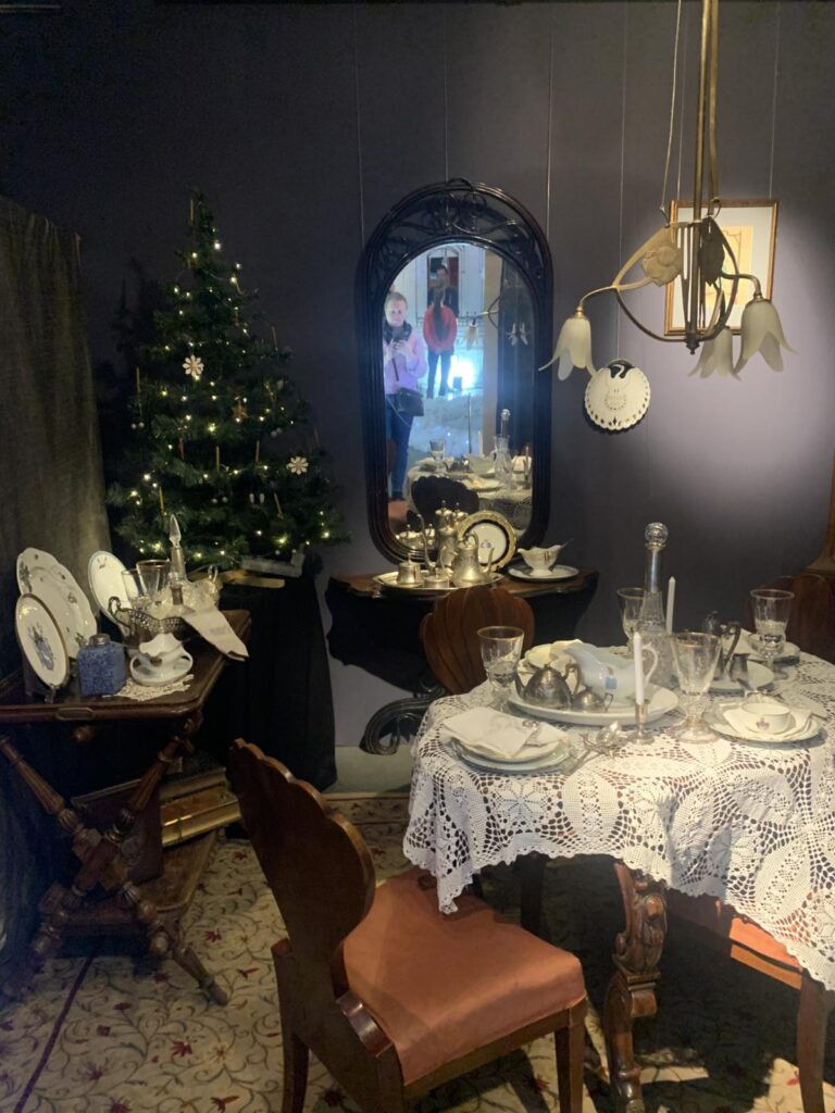 На виставці представлені експонати, що є маленькими частинками великої епохи: швейна машинка «Зінгер», яка для багатьох була сімейною реліквією, касовий апарат, що був у 100 років тому, старовинні французькі журнали моди, тогочасні деталі жіночого будуару, особисті речі акторки Марії Заньковецької і, звісно, головні атрибути свята – ялинка та новорічний декор.