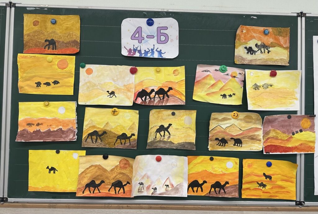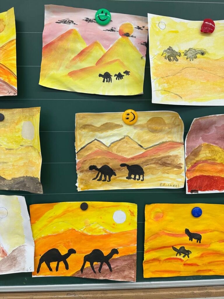Пустеля – природна зона, що розташована в тропічних та помірних поясах. Жаркий та сухий клімат пустель зумовлює бідність рослинного та тваринного світу. Пустелі існують на всіх континентах окрім Антарктиди. Відомі нам пустелі світу: африканські Сахара та Наміб, австралійська Сімпсон, євразійська Гобі та Атакама- південно- американське чудо, яке використовують для зйомок фільмів. Вони вражають своїми дюнами, барханами та міражами, а тому і наші учні їх не лише вивчають на уроках, але й навіть малюють.