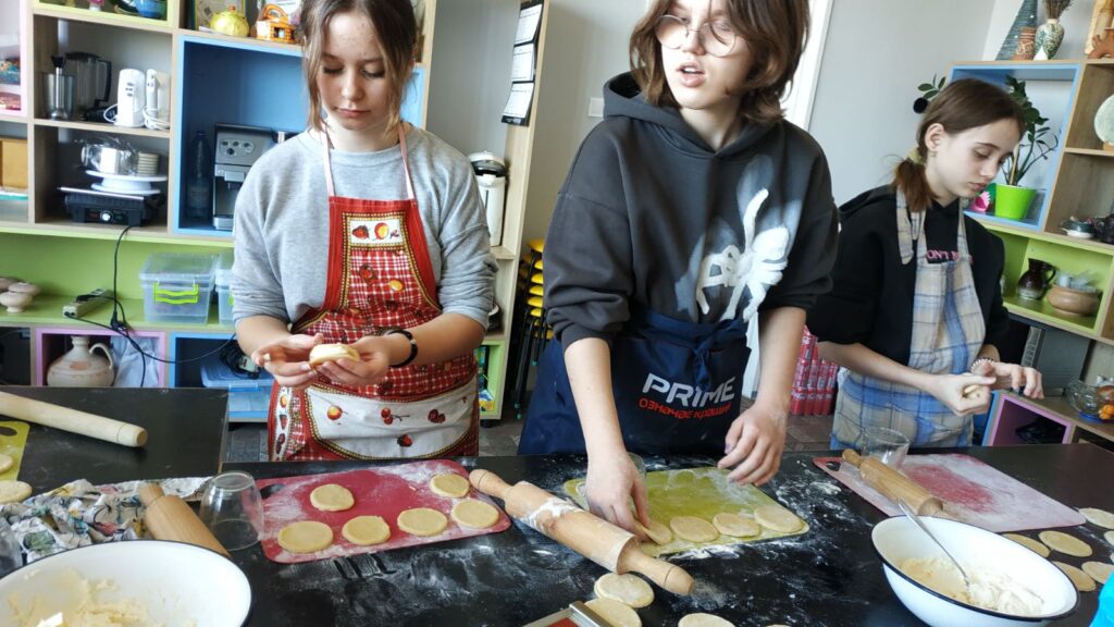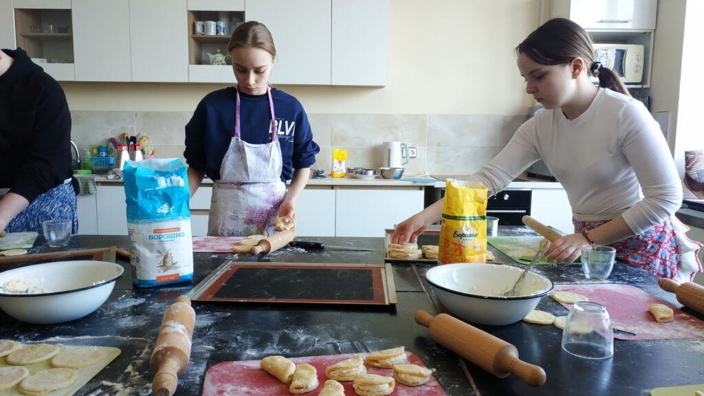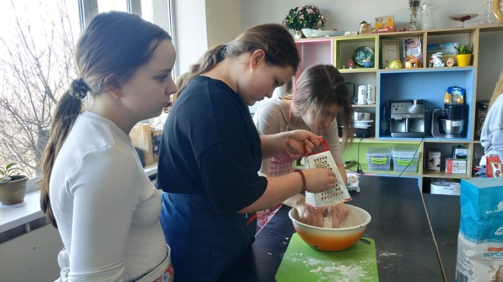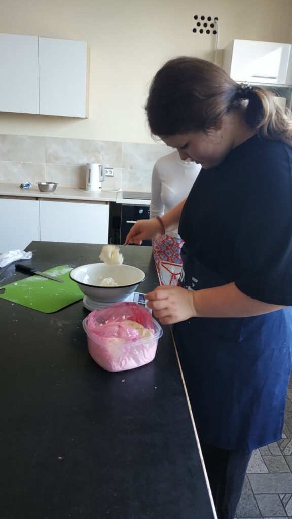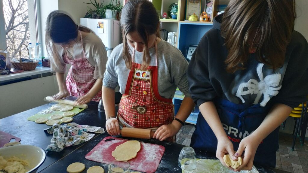 Сьогодні учні 7-А класу відвідали КПДЮ, зокрема і своє улюблене заняття з кулінарії. Сьогодні пані Ірина познайомила учнів з рецептом смачних сочників з сирною начинкою, а також навчила їх готувати. Кожен учень спробував практично всі процеси виготовлення та випікання сочників. У когось краще виходило просіяти борошно, у когось подрібнити вершкове масло, у когось вивісити тісто…А ось виготовлення самих сочників було захоплюючим для всіх учнів.Кожен намагався зробити свої вироби якомога краще.І це їм чудово вдалося! Смаколиками власного виготовлення були запашними та неймовірно смачними.