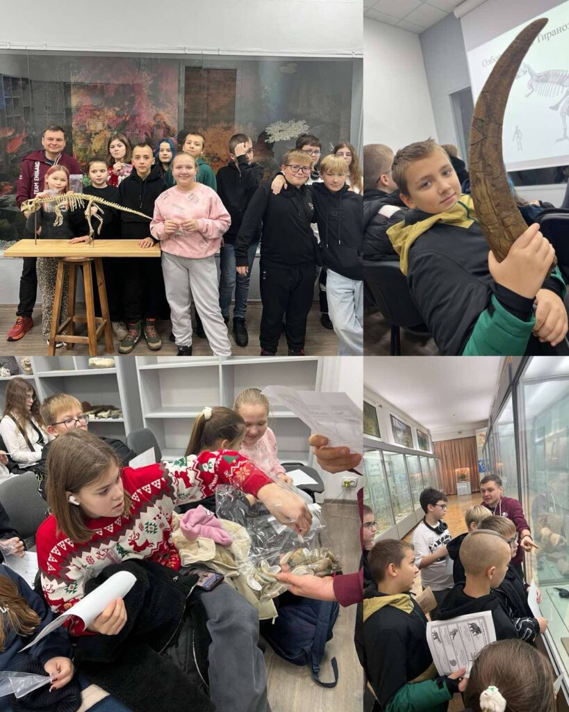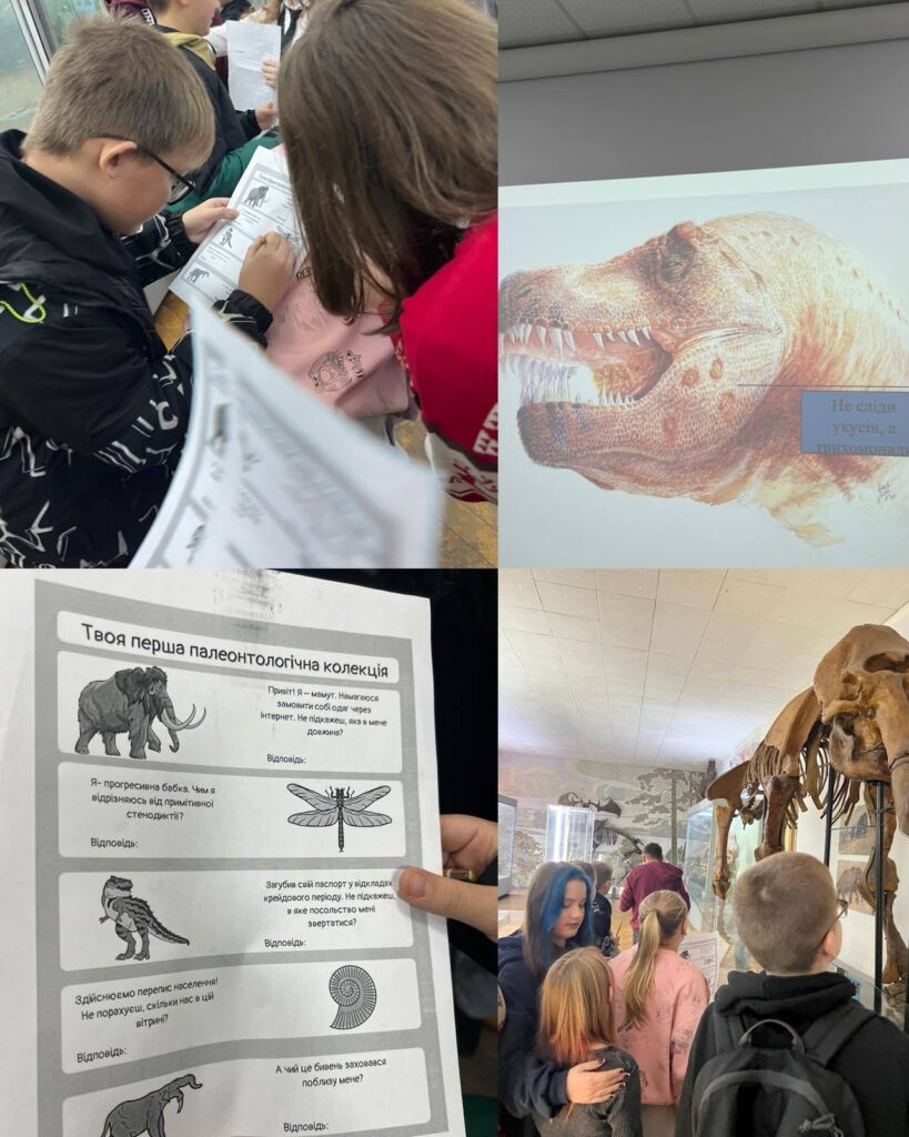 Учні після цікавої розповіді наукового співробітника прийняли участь у квесті «Втрачений світ динозаврів». Їх очікувала подорож музеєм, цікаві запитання, уважність у розрахунках, швидкість та знання , які вони отримали , слухаючи лекцію.